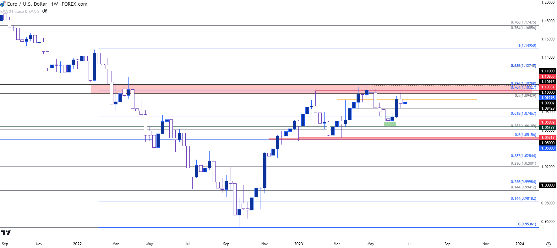 图表由James Stanley绘制,Tradingview上的欧元/美元