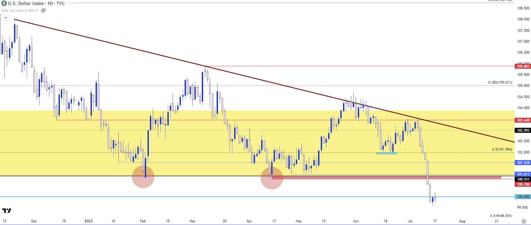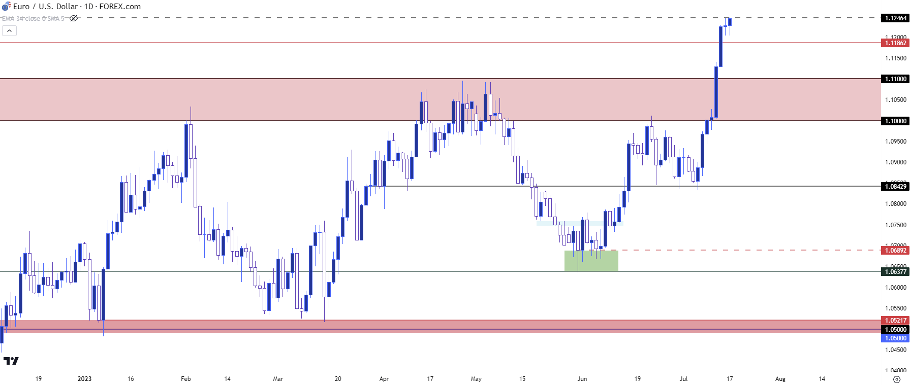 图表由James Stanley绘制,Tradingview上的欧元/美元