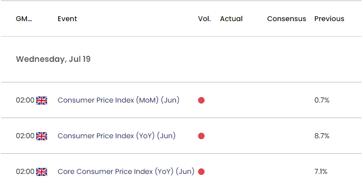 然而,在6月会议上出现7比2的分歧,英国CPI的大幅放缓可能会导致货币政策委员会(MPC)内部出现更大的分歧,而贝利行长及其同僚是否会在8月3日的下一次利率决议中改变前瞻性指引还有待观察,因为“CPI通胀预计将在今年进一步大幅下降”。